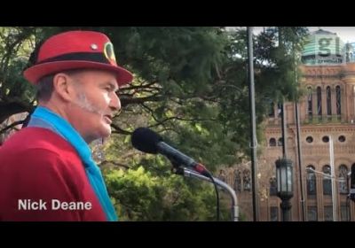The AUKUS nuclear submarine deal undermines nuclear non-proliferation, warned anti-war activist Nick Deane at the Sydney Hiroshima Day rally. Video by Peter Boyle.