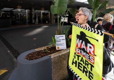 “Money for health and education, not for war and devastation!” rang out as arms lobbyist and former Coalition minister Christopher Pyne arrived at the Defence Strategic Review Summit. Jim McIlroy reports.