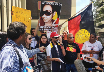 On August 4 the family of Ms Dhu and their supporters marked the second anniversary of her death in police custody in South Headland with a rally outside Perth's Central Law Courts. Ms Dhu's family is calling for an independent investigation into her death, as well as demanding the release of CCTV footage that shows her last hours alive in custody. Ms Dhu, who was 22 years old at the time, had been detained for the non-payment of fines amounting to $3622, but died within two days of being taken into custody.