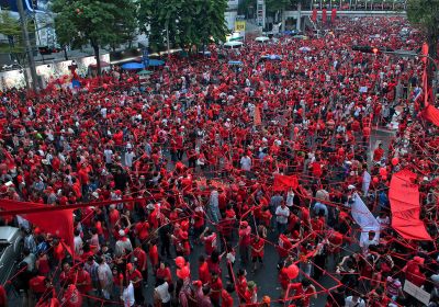 On September 19, tens of thousands of pro-democracy Red Shirts returned to the Ratchaprasong intersection in Bangkok to remember the military coup that took place four years ago, as well as the murder of about 90 unarmed demonstrators in April and May. Then, many of the protesters were gunned down by army snipers near Ratchaprasong. Since the brutal killings by the military-backed Abhisit Vejjajiva junta, there has been a climate of fear. Hundreds of political prisoners have been locked up and there is evidence of extrajudicial killings of Red Shirt activists.