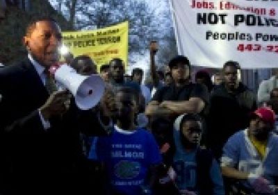 Democracy Now! reports from the streets of Baltimore, where an overnight curfew has taken effect following Monday’s riots sparked by the death of Freddie Gray, the 25-year-old African-American man who died of neck injuries suffered in police custody.