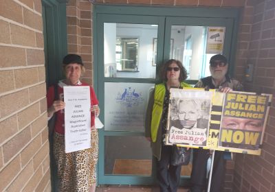 Four activists wanting to deliver a letter calling for Julian Assange's release were refused entry to Anthony Albanese electorate office. Stephen Langford reports.