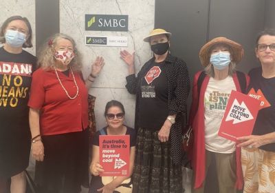 Climate campaigners are demanding that Sumitomo Mitsui Banking Corporation, MUFG Union Bank and Mizuho Bank stop funding Whitehaven Coal. Coral Wynter reports.