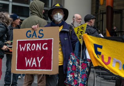 Protesters rallied outside a Santos office, calling on it to abandon its Narrabri Gas Project in the Pilliga State Forest in north-west NSW. Jim McIlroy reports.