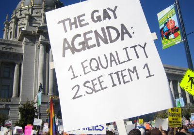 On International Day Against Homophobia, Biphobia and Transphobia day, protesters affirmed they would not let politicians promote bigotry. Kerry Smith reports.