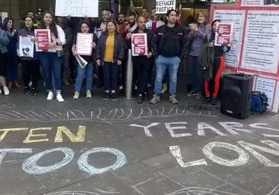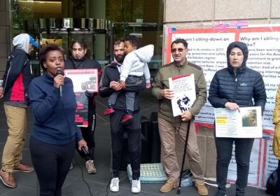 A group of Iranian refugees are continuing their round-the-clock sit-in outside the Immigration Department. Chris Slee reports.
