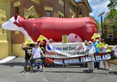 Climate activists joined Gomeroi First Nations, farmers, unions, Knitting Nannas and the Country Women’s Association to protest Santos’ expanded plans to mine coal seam gas in the Pilliga. Jim McIlroy reports.