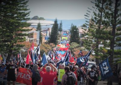 The South Coast Labour Council organised the first big union protest against Labor's AUKUS nuclear submarines in Port Kembla. Jim McIlroy reports.