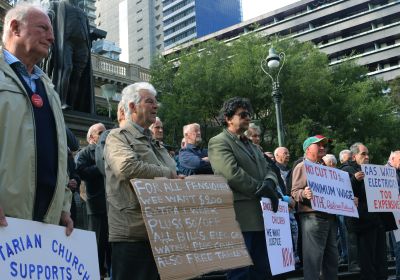 Protestors took to the streets around Australia on February 20 against the federal government's proposed cuts to health care in #TheseCutsAreKillingUs rallies. Protesters in Sydney, Melbourne, Adelaide, Brisbane, Canberra and Perth came out to defend Medicare and to oppose government plans to charge for previously free pathology tests. This could lead to doctors having to charge at least $30 for blood tests, MRIs, X-rays, pap smears, urine tests, ultrasounds and more.
