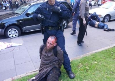I was attending a small but engaging rally against internet spying on September 15, organised by the Pirate Party and others at Hyde Park North, when seven police cars and four-wheel-drives drove into the park and about 20 police officers got out. Protesting members of the Muslim community shouting “Allahu Akbar!”, marched into the park and police told us to hurry and pack up. More police ran, in phalanx formation towards the Muslim rally.