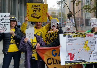 The Sydney Knitting Nannas and Friends once again protested outside state parliament against NSW planning’s decision to recommend Santos’ coal seam gas project in the Pilliga, reports Pip Hinman.