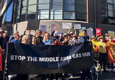 A crowd rallied outside federal Environment Minister Tanya Plibersek’s office demanding an end to Labor's support for the Middle Arm gas project in the NT. Jim McIlroy reports.