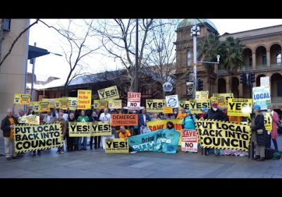 Town and country united in a Keep Councils Local rally at NSW parliament, where speakers called on the Coalition government to act. Video by Peter Boyle.