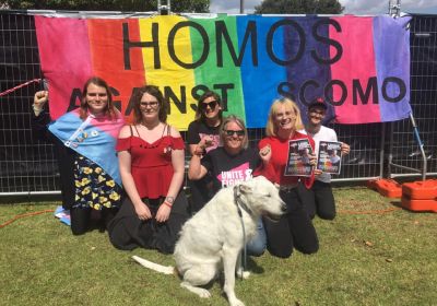 A support crowd formed a “wall of gay” outside the Maylands Library to support drag story hour and counter the handful of bigots. Petrina Harley reports.