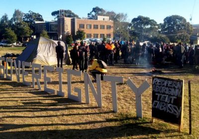 The Redfern Tent Embassy survives, a week after an eviction notice was served demanding that they vacate by February 23. For four long days, locals and supporters have kept watch to protect the Block from an expected hoard of Redfern police coming to enforce the eviction.