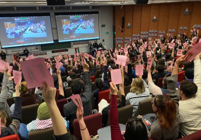 Students voted overwhelmingly for the University of Queensland to cut ties with weapons manufacturers and divest from Israel at a 1500 strong meeting. Sam Morris reports.