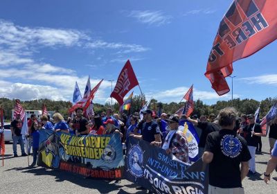 Hundreds showed solidarity with workers taking protected industrial action to support their colleagues who were replaced with labour hire by Svitzer. Jacob Andrewartha reports.