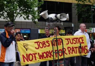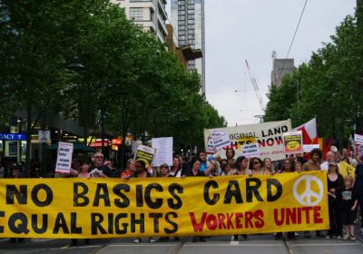MELBOURNE — About 200 people marched against the NT intervention and for equal pay and jobs with justice for Aboriginal workers on March 4. The rally was organised by the Melbourne Anti-Intervention Collective. It demanded an end to the exploitation of Aboriginal workers in the Northern Territory. The intervention, which quarantines the welfare payments of targeted people, has meant that Aboriginal people are in effect working for rations cards while living in extreme poverty. -