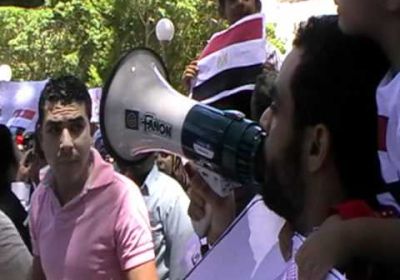 Socialist councillor Sam Wainwright speaking at Perth Egyptian democracy rally